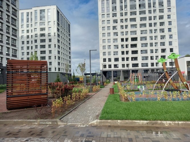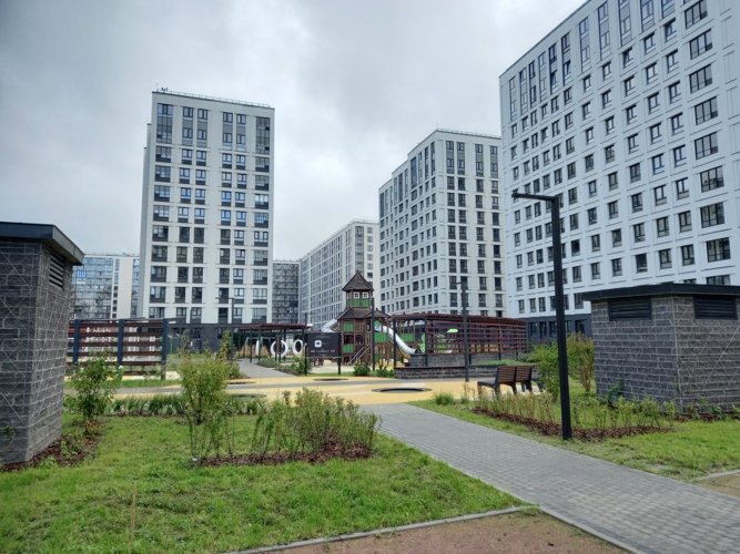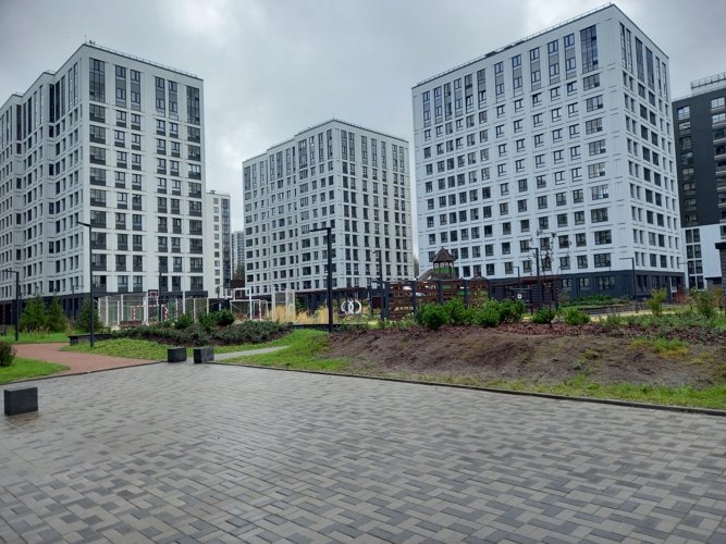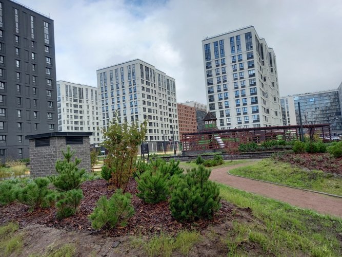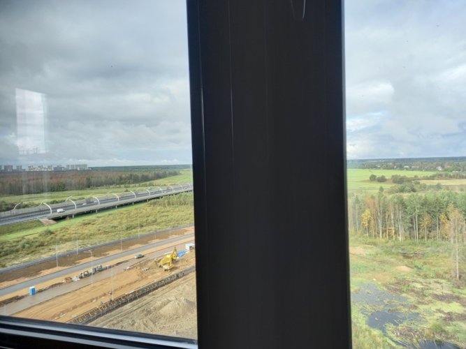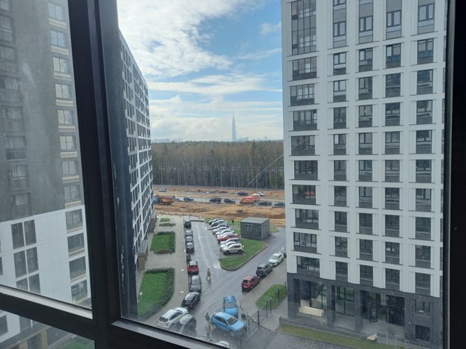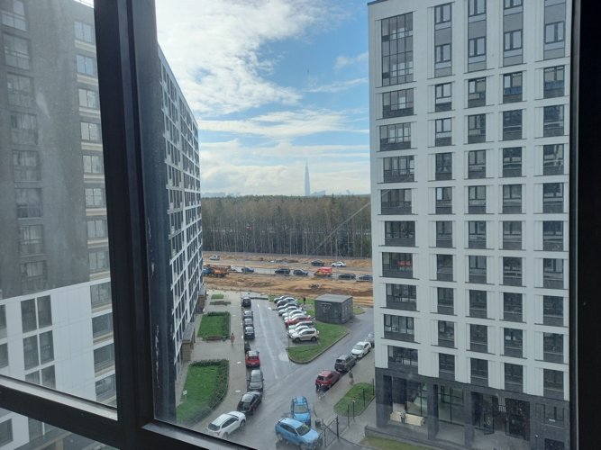 В ЖК “Тайм Сквер” открываются виды или на Лахта Центр с его сияющей подсветкой в ночное время, или на леса Юнтоловского Заказника, или на поля близлежащей деревни Каменка.