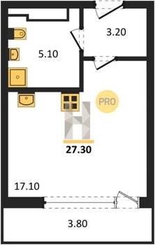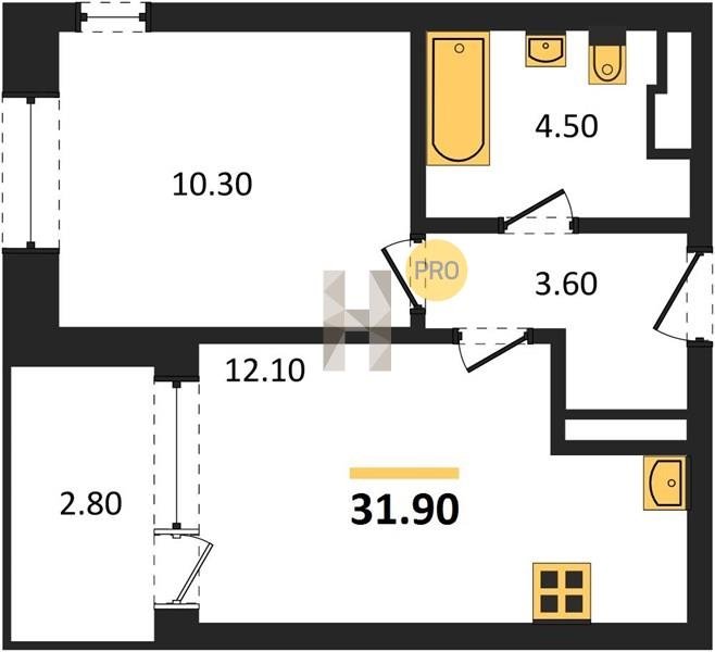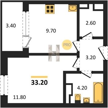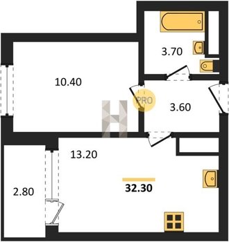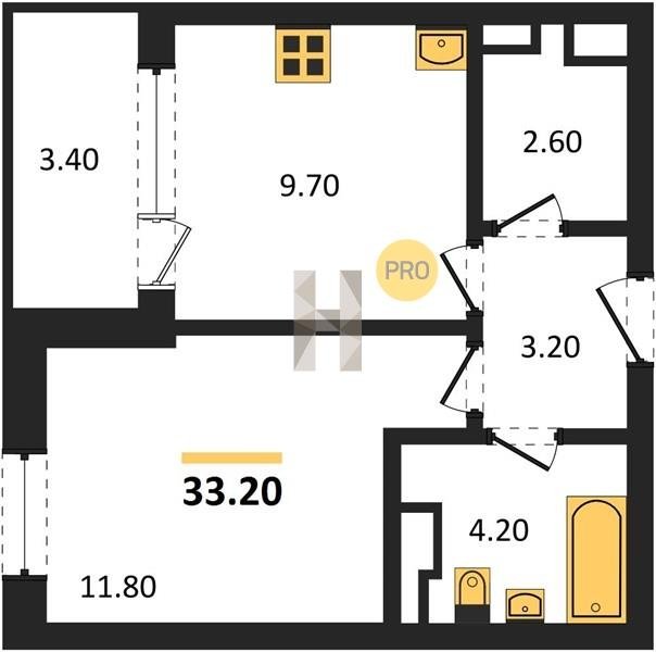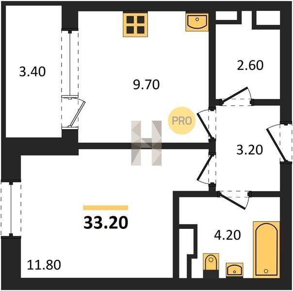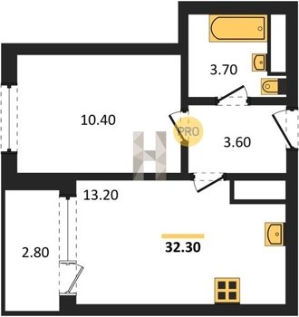 Площадь от 32.1 м2