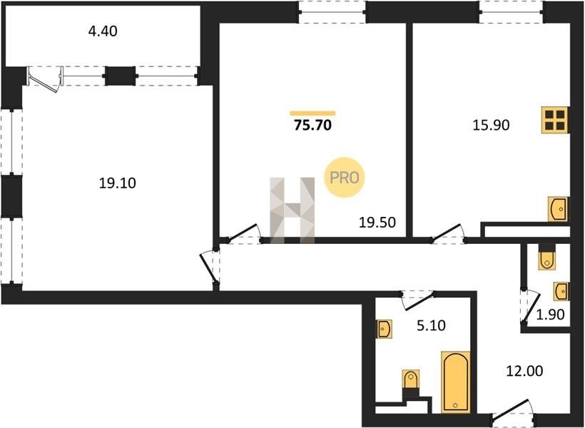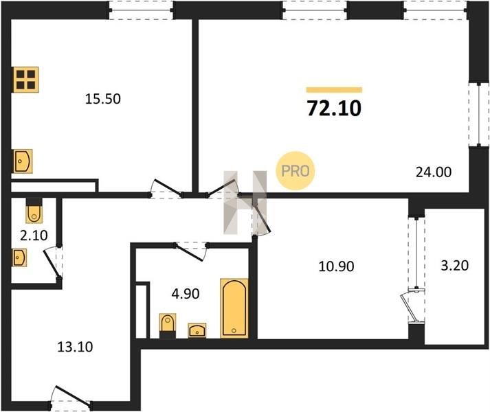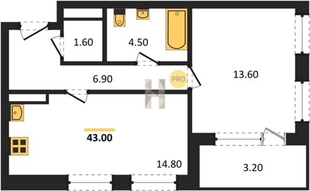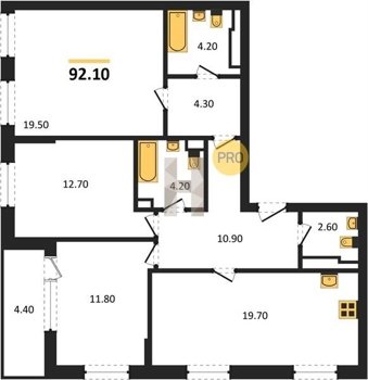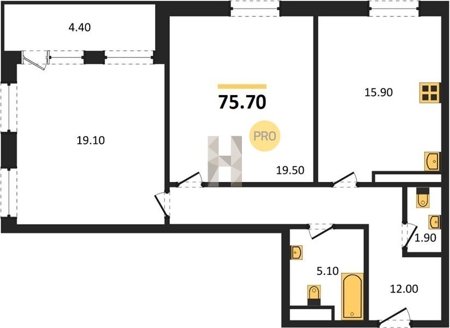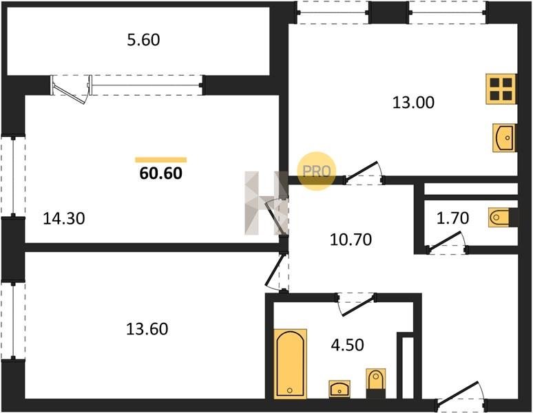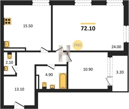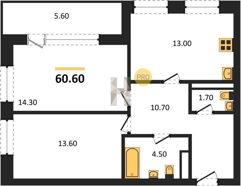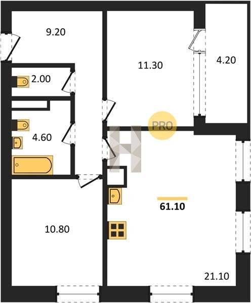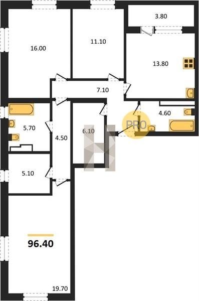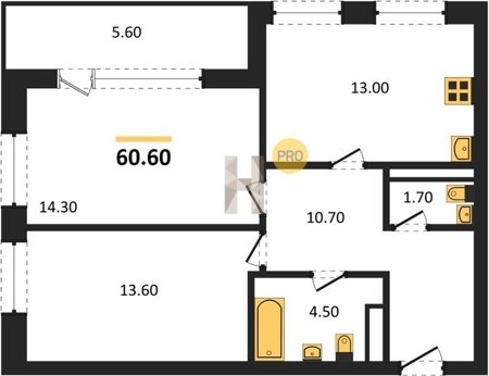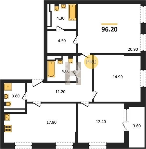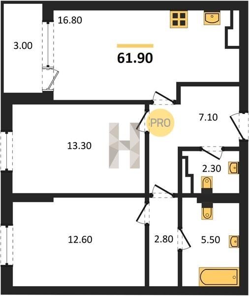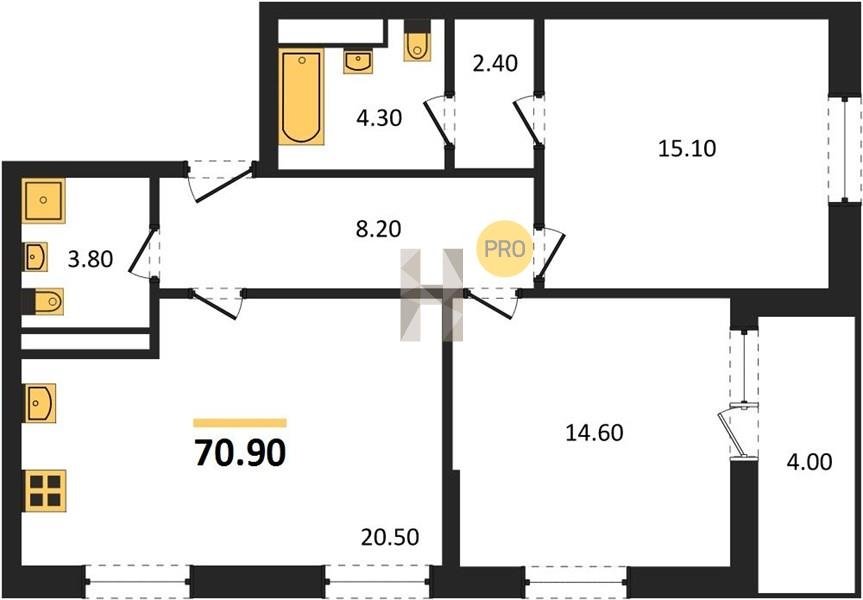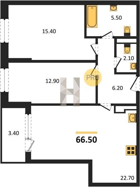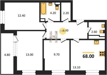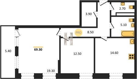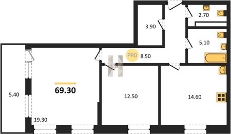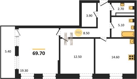 Площадь от 68.6 м2