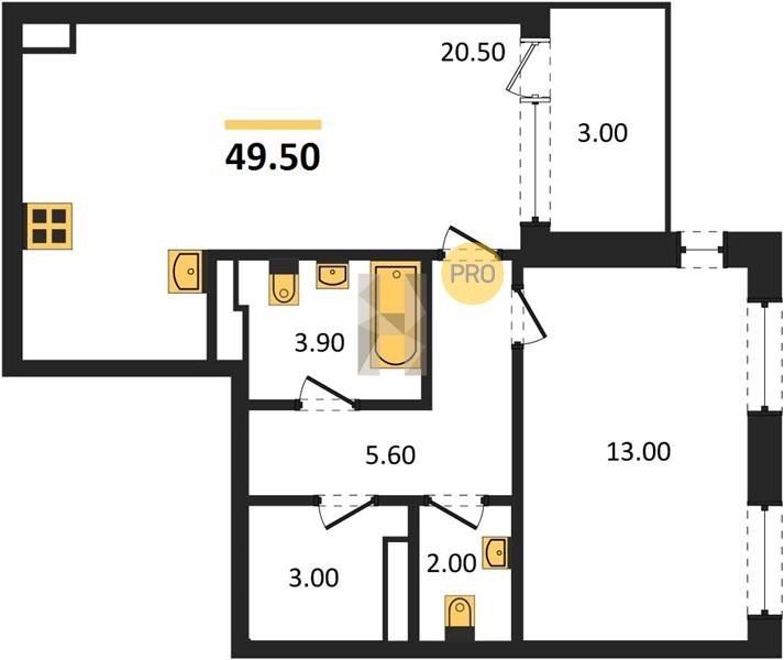 Площадь от 52 м2