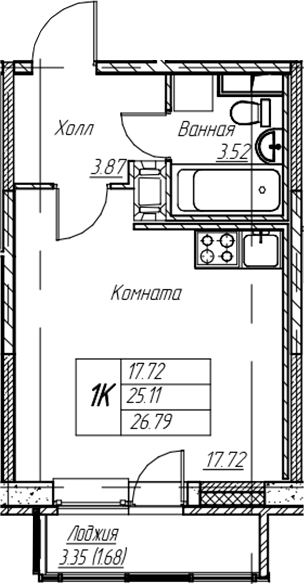 Площадь от 26.77 м2