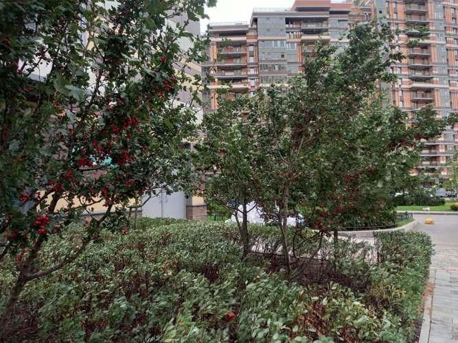 Рядом с ЖК "Приморский квартал" : 3 ТЦ , 2 Парка. При этом и от Петропавлоской крепости - всего 25 минут на автобусе. "Приморский квартал" - это и деревья (клёны, лиственницы, ели, сосны. пихты, фруктовые деревья), и кустарники, и цветы, и украшение камнями. Также на достойном уровне детские площадки, как маленькие, так и крупные.