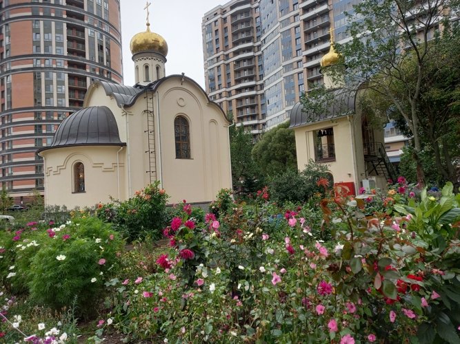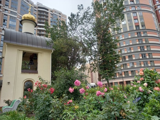 Расположена внутри квартала. Окружена цветником, радующим глаз.