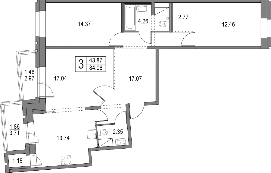 Рассрочка на студии, 2 и 3-комнатные квартиры