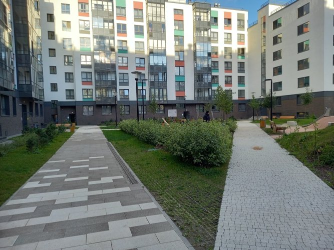 У входов в секции в ЖК "OKLA" предусмотрены велопарковки. В жилой зоне между Суздальским шоссе и рекой Каменка прорисован ряд велодорожек. На самом Суздальском шоссе достаточно широкий тротуар вдоль леса с шикарным асфальтом. Добавим сюда ряд красивых мест у озёр в окрестностях, возможность покататься со склонов в Шуваловском парке - и мы действительно получаем идеальную локацию для велосипедистов.